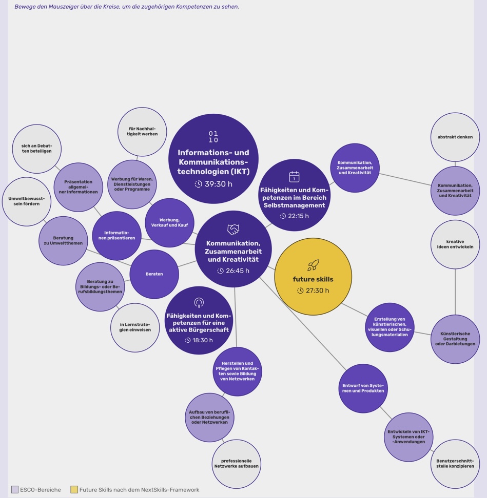 Der Teilnahme-Badge entspricht im Wesentlichen einer Teilnahmebescheinigung, beim Kompetenz-Badge analysiert ein KI-Assistent dein Lernangebot und schlägt dir automatisch passende Kompetenzen aus der europäischen Kompetenzdatenbank ESCO (European Skills, Competences, Qualifications and Occupations) vor. So werden die Badges europaweit einheitlich verstanden – sogar auch von Arbeitgebern, Bildungseinrichtungen und Jobplattformen. Als dritte Möglichkeit lassen sich mehrere Badges zu einem Lernpfad verbinden. Wenn Teilnehmende dort alle Badges erworben haben, erhalten sie dafür einen Micro Degree.