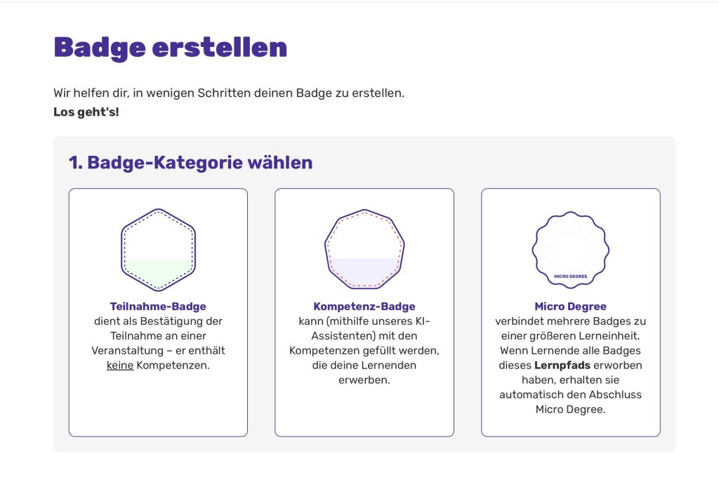 Du kannst zwischen drei „Badge-Kategorien“ wählen: