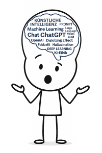 Wenn du dich mit KI beschäftigst, sind dir wahrscheinlich schon eine Menge unterschiedlicher themenbezogener Begriffe begegnet. Aufgrund der Vielzahl an Begriffen und ihrer nicht immer sachgemäßen Verwendung kann es dir vorkommen, als würdest du eine neue Sprache lernen. Dieses Glossar ist ein Versuch, dich durch diesen Dschungel der Begriffe hindurch zu führen. Es erhebt keinen Anspruch auf Vollständigkeit, sondern möchte Orientierung und Verständnis fördern.